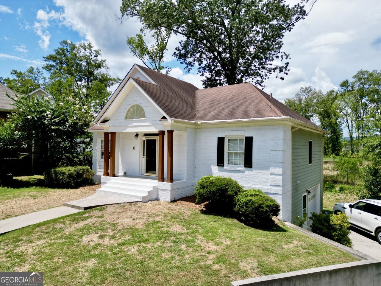 This custom-built home offers thoughtful upgrades throughout. The newly constructed front porch welcomes you into the main living area featuring a natural gas log fireplace with built-in shelving on both sides, newly refinished hardwood flooring, fresh paint, and recessed lighting. The remodeled master bathroom includes a brand-new tile shower and tile flooring, and the master bedroom features new carpet. The laundry room has been updated with new tile flooring, can lighting, and fresh paint. A sunroom just off the living room provides abundant natural light and a relaxing space to unwind. The fully finished basement extends the living area with 1 bedroom, 1 full bath, and two additional flex rooms, perfect for an office, media room, or workout space. Additional highlights include 9-foot ceilings with crown molding, creating an open and elevated feel. This home blends modern updates with quality craftsmanship-move-in ready and full of charm.