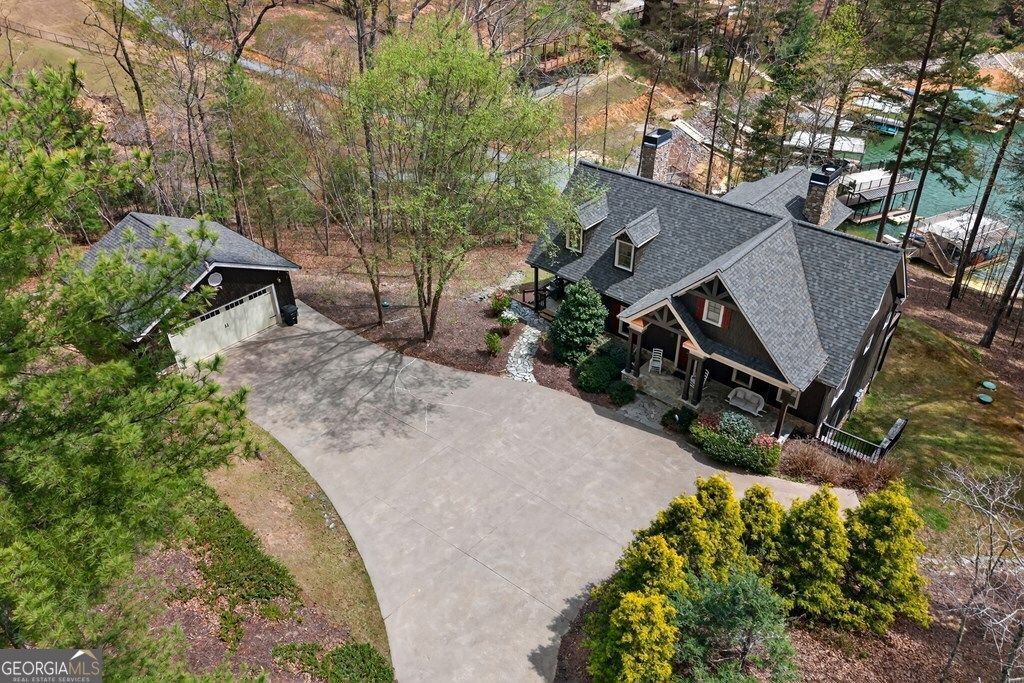 RARE CRAFTSMAN AT THE PRESTIGIOUS AZURE POINT ON 2.32 ACRES ON LAKE BLUE RIDGE! Seldom do you find a private, wooded estate of this size just minutes from downtown Blue Ridge via all-paved roads! This splendid 4BD/3.5BA custom home offers the ultimate combination of waterfront privacy and town convenience. Inside, enjoy soaring cathedral ceilings, stunning stone accents, two fireplaces, open dining, and a game room. Step outside to a massive screened porch with a striking outdoor fireplace, perfect for taking in beautiful lake views. Complete with a private double-decker boat dock and jet ski port. A truly rare find in a highly pursued lake location!