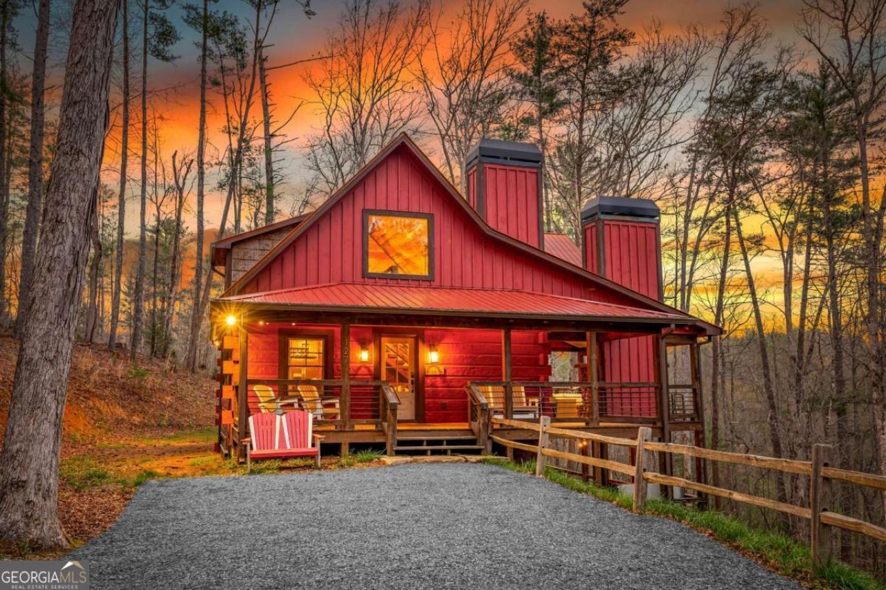 Creekside living has never looked this good! This stunning Craftsman retreat by Nicholson Home Builders is the kind of place where memories are made-whether you're roasting marshmallows by the fire, soaking in the hot tub under the stars, or listening to the peaceful sounds of the creek rolling by. Tucked away on 1.8 private acres, this 3BR/3BA getaway delivers the perfect mix of cozy charm and mountain luxury across three spacious levels. Step inside to a soaring great room with vaulted ceilings, rich wood floors, and a gorgeous custom rock fireplace that practically begs for a crackling fire and a glass of wine. The kitchen is ready for everything from pancake mornings to holiday feasts, featuring granite countertops, a center island, stainless appliances, and a farmhouse sink-all flowing easily into the dining area for effortless entertaining. The main level bedroom opens right onto the back porch, where the real magic happens: another fireplace, a BBQ grill, and plenty of space to kick back and unwind. Upstairs is a built-in adventure zone with a loft bunk area perfect for kids (or fun-loving adults), plus a spacious bedroom with its own oversized balcony-ideal for morning coffee with a mountain breeze. Head down to the terrace level and let the good times roll! You'll find a game/media room with-you guessed it-another cozy fireplace, a wet bar with full-size fridge, and easy access to the oversized porch featuring a hot tub and lounge space. Just beyond, a charming path leads you to the creekside firepit and play area, where days turn into unforgettable nights. Already part of a successful rental program, this property is as smart as it is fun-perfect for an investment, second home, or your own full-time escape. And when you're ready to explore, you're just 20 minutes from Blue Ridge, filled with local eats, unique shops, and outdoor adventures galore. This isn't just a cabin-it's your mountain lifestyle waiting to happen.
