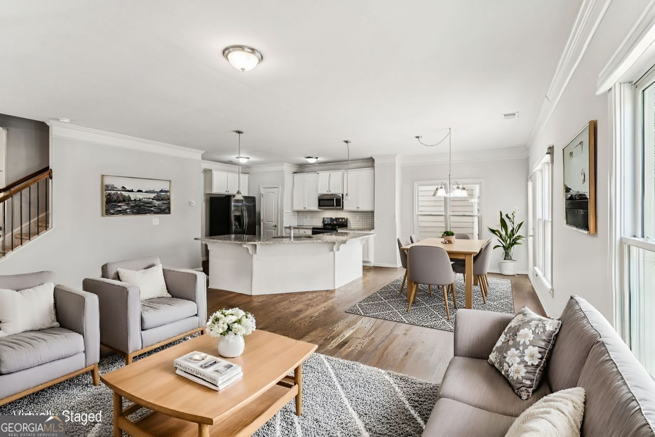 Your Next Chapter Starts Here - Woodstock Village Tucked inside the sought-after Woodstock Village community, this stunning 3-bedroom, 2.5-bath home blends the freshness of new construction with the warmth of a neighborhood that already feels like home. From the moment you step inside, the open-concept layout draws you in - gleaming hardwood floors, soaring ceilings, and natural light that pours through every room. The kitchen is the kind you cook and entertain in: granite countertops, stainless steel appliances, and - crown molding, brand-new carpet, and thoughtful details throughout. Three generously sized bedrooms each feature walk-in closets that actually fit your life. The primary suite is your personal retreat, complete with a double vanity and a deep soaking tub - because you've earned it. And downstairs, an unfinished basement hands you a blank canvas: home gym, media room, guest suite - the choice is yours. Step outside to a private backyard with a freshly stained deck made for weekend grilling, golden-hour wine, or just exhaling after a long day. The location? Hard to beat. -- Quick access to Hwy 92 & I-575 means you're minutes from downtown Woodstock's restaurants and events, and a short drive to Roswell's shopping and dining scene. Move-in ready. Low-maintenance living.