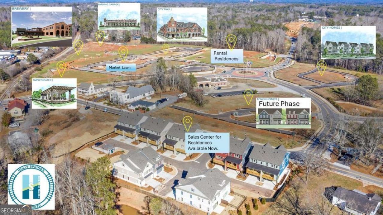 Come home to the heart of it all in one of Cherokee's most dynamic new addresses at the new Holly Springs Town Center with walkable access to Town Center's restaurants, retail stores, green spaces, events and a new outdoor amphitheater UNDER CONSTRUCTION NOW! Centered on the landmark new Holly Springs City Hall, the heart of Holly Springs Town Center will be an inviting community space set to play host to festivals, markets and community events like the city's annual Autumn Fest, monthly concerts, food truck nights, morning farmers markets, Christmas Parade and more. The NEW Holly Floor Plan by Stonecrest Homes serves as our model home and is now available for purchase.. This townhome residence offers the best in lock and go living with 4 bedrooms, 3.5 bathrooms, over 2700 sq ft across three levels. Family room with fireplace overlook covered brick front porch. Stunning Kitchen with center island and walk in pantry walk out to rear covered porch. Generous primary suite with spa bath. Two secondary bedrooms up share a gracious hall bath. Flex room on lower level with walk in closet and full bath with shower stall serves as rec space or guest suite. Additional unfinished room on the lower level can easily convert to an exercise or work from home space. Two car rear entry garage with addt'l storage. Perfect floorplan for today's ACTIVE lifestyle. Walk to the new HOLLY SPRINGS TOWN CENTER! Enjoy Food Truck Alley Nights and Holly Springs Harmonies Concert night held at the adjacent Historic Train Depot at the corner of Holly Springs Parkway & Hickory Rd. Don't miss this early opportunity to live in another Cherokee County TOWN CENTER like DT Woodstock or Canton before it goes vertical. Calling all who remember that real estate's most important factor is location, location, location!