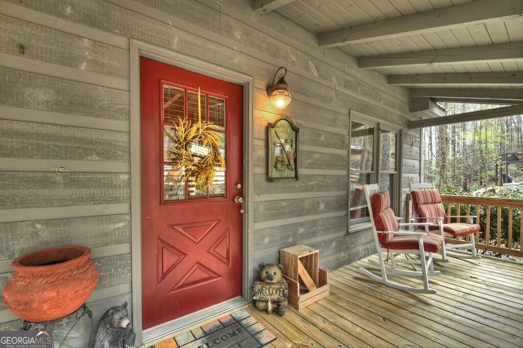 Tucked away in the gated Woodland Acres community, this FULLY FURNISHED 3BR/3BA mountain cabin offers the perfect blend of privacy, comfort, and North Georgia charm. Surrounded by hardwoods, this inviting retreat features a warm wood interior, soaring vaulted ceilings, and an open-concept living space anchored by a beautiful stone and woodburning fireplace. The kitchen offers stainless steel appliances, ample cabinetry, a breakfast bar, and flows seamlessly into the dining and living areas-ideal for entertaining or relaxing after a day in the mountains. Step outside to enjoy peaceful mornings or unwind on the covered porch with a swing overlooking the natural setting. Located just minutes from the Cartecay River, local apple houses, scenic biking trails, and a short drive to Amicalola Falls, this property is perfectly positioned for full-time living or second home. Move-in ready and sold fully furnished just bring your toothbrush and start enjoying mountain life.