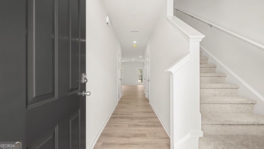 Welcome to 2006 Roseleigh Park in Douglasville, GA. The Pearson II two-story plan features 3 bedrooms and 2.5 bathrooms in 1,508 square feet along with a 1-car garage. As you step off the front porch, a long foyer welcomes you and leads you into the main living area as you pass by a half bathroom in the front hallway. The large living room is the perfect space for family and friends to gather or for a quiet night with a movie or book. Enjoy easy access to the back patio where you can relax with coffee in the mornings. The living room flows seamlessly into the contemporary designed kitchen with an attached island, white cabinets, and granite countertops. Homeowners will appreciate the durable, laminate wood flooring throughout the main level, that is perfect for any active household. Up the stairs you'll turn from the landing into the primary suite. A spacious bedroom is complimented by the en suite bathroom featuring a granite topped, dual vanity and roomy walk-in closet. Across the landing you'll be led into one of the two additional bedrooms, both with walk-in closets. The laundry room and an additional bathroom round out the upper floor. Call us at Roseleigh Park today to see the Pearson II at 2006 Roseleigh Drive in Douglasville, GA in person! By Appointment Only on Mondays & Tuesdays. NOT ACTUAL HOME. Sample same plan and elevation. Interior photos are from model home of same plan.