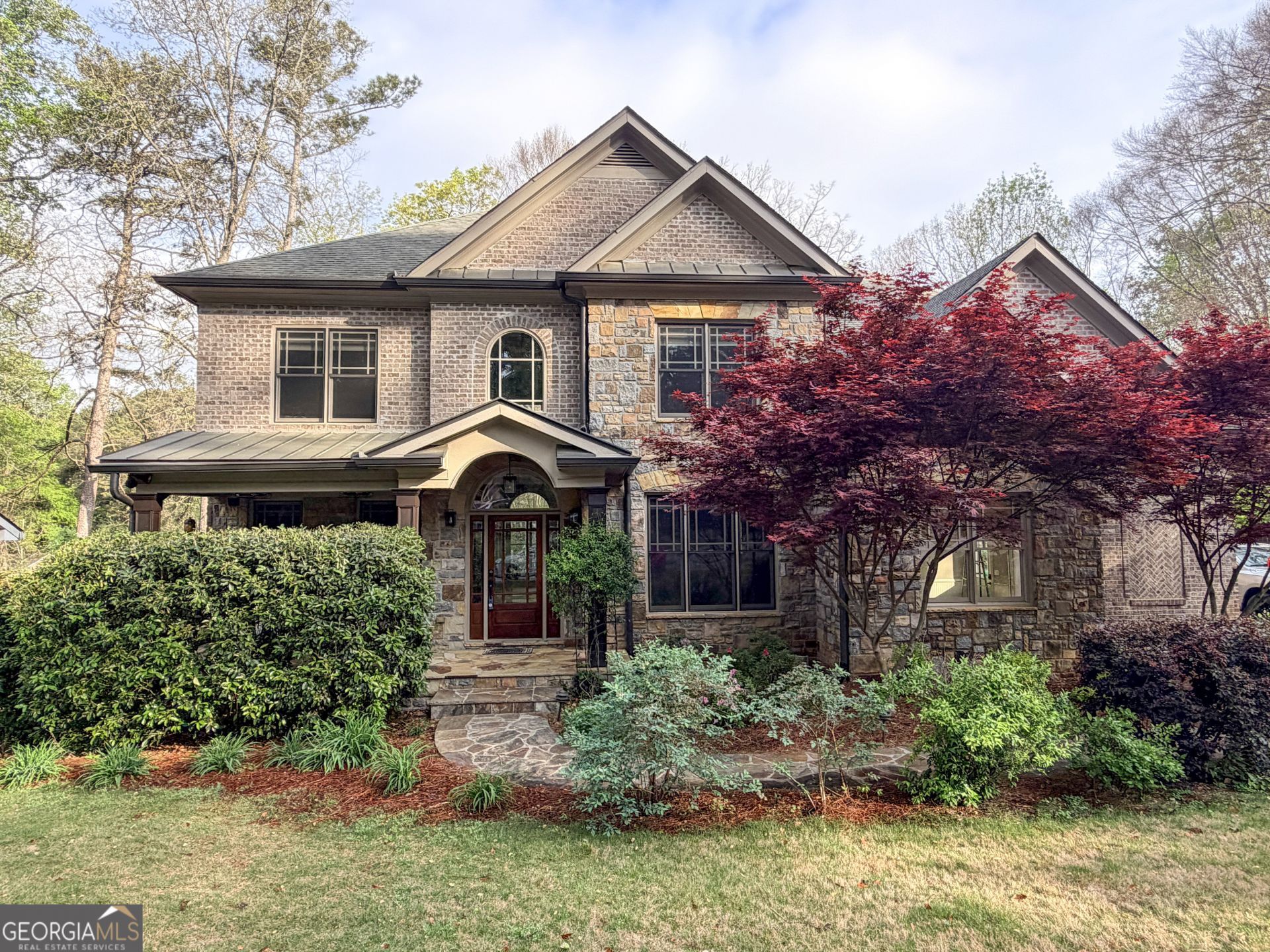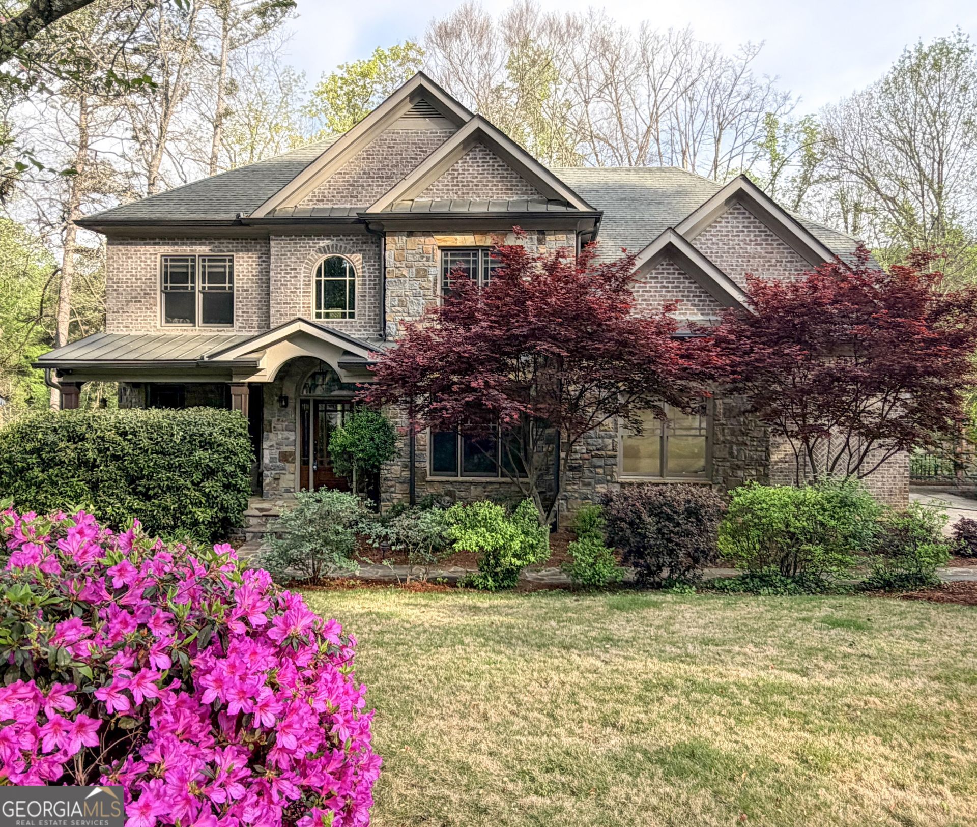 This sophisticated 2010 residence offers an ideal retreat for the discerning professional seeking proximity to Emory University and Healthcare campuses. Distinguished by a stately stone and brick facade, the home opens to an expansive main level defined by ten-foot ceilings, gleaming hardwood floors, and a versatile layout featuring a guest suite and a dedicated study perfect for a private home office. The gourmet kitchen serves as a culinary center with its six-burner gas range, stainless steel appliances, and glass front cabinetry, flowing seamlessly into a spacious family room anchored by a stone fireplace. Exploring further will reveal a full finished basement level, volume ceilings in many rooms, and 6 comfortable bedrooms. The flexible floor plan has a main floor bedroom and bath, 4 bedrooms on the second level and a finished terrace level that features a full bathroom, game room, exercise room, and potential bedroom options. Upstairs, the oversized primary suite provides a serene sanctuary with volume ceilings, a generous walk in closets, and a spa-inspired bathroom equipped with a soaking tub and a contemporary glass shower. The second level continues with three additional well-appointed bedrooms and a substantial flex space suitable for a media room, playroom, secondary library or your special need. The laundry room is also located on the upper level. Comprehensive living space extends to the finished terrace level, which accommodates a fitness studio perfect for your Peloton bike or weight set, a large recreation room for entertaining, a full bathroom and additional rooms for guest overflow or specialized workspaces. Three distinct outdoor spaces are waiting for your special touch. Residents can enjoy the tranquil wooded views and the sound of the flowing stream from the elevated main floor rear deck - space for grills, seating area and dining table on this level. Soak in the hot tub on the terrace level patio or enjoy lounging on front porch under the ceiling fan. All 4 sides of the exterior feature a brick finish which could save you thousands in future maintenance costs. Easy access to Echo Hills Recreation Club (with swim and tennis) at the end of Melinda Drive. There's a bridge walkover that connects directly to the private neighborhood swim and tennis club. Lakeside HS and Globe Academy are also very close by. Other local amenities include St. Pius X Schools, IHM School, Lakeside High School, and Mary Scott Nature Park (across from Globe). Commuters to Emory, CDC or CHOA are just minutes from home when the workday is over. From Shallowford Road, access I-85 to easily reach destinations in Midtown, Brookhaven, and downtown. If you've been waiting for a quality home to hit the market, act now and see this well-appointed home. see floor plans at end of photo stream