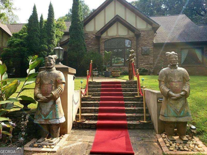 make the remarks one continous paragraph Welcome to Cipresso Castle, an extraordinary British-inspired estate where luxury, artistry, and opportunity converge. This gated 3.62-acre property offers exceptional flexibility for residential living, short-term rental, event venue use, or a private retreat, all set against a serene lake backdrop with an additional lake just beyond the property. Constructed of brick and stone with timeless architectural detail, the estate makes an unforgettable first impression with its stately presence and manicured grounds. Inside, the residence is a true work of art, featuring soaring ceilings, intricate millwork, custom built-ins, and stunning stained glass windows that cast a warm, ambient glow throughout. Multiple grand living spaces are thoughtfully designed for both intimate gatherings and large-scale entertaining, including a dramatic formal living room with fireplace, a music room highlighted by a raised platform and grand piano setting, and richly appointed sitting areas filled with character and charm. The elegant dining room is framed by oversized windows and detailed finishes, while unique design elements, curated lighting, and bespoke decor create a one-of-a-kind atmosphere in every room. The home offers 4 spacious bedrooms and 3.5 bathrooms, each designed with distinctive style and comfort in mind. The interiors blend old-world elegance with artistic flair, from ornate furnishings and custom ceiling details to curated architectural accents that make the home truly unforgettable. Expansive windows throughout capture peaceful views of the surrounding landscape and water, enhancing the estate's tranquil setting. Cipresso Castle is offered fully furnished with high-end, designer-selected pieces that complement the home's luxurious aesthetic, and also includes a rare 1959 Jaguar, adding to the property's timeless appeal. Known as a sought-after filming location, the estate has been featured in Netflix's Dumb Money and numerous other productions, attracting filmmakers and creatives alike. With its unmatched character, income-producing potential, and endless possibilities for use including event space, wellness retreat, or private estate, Cipresso Castle is truly a legacy property. Revenue statements available upon request with a letter of intent. Experience a residence where every detail tells a story and every space inspires.