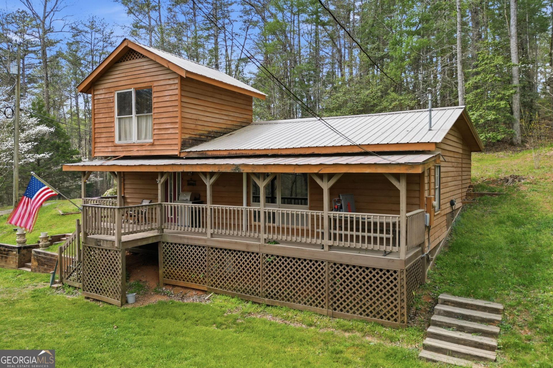 Incredible Investment Opportunity: Priced to Sell! Don't miss this charming property situated on 1.39 acres of wooded and open land just minutes from downtown Ellijay. Whether you're looking for a full-time home, rental, or weekend getaway, this one checks all the boxes. This adorable 2-bedroom, 1-bath home features a split bedroom floor plan for added privacy, a cozy eat-in kitchen, and a convenient bathroom/laundry combo. Kitchen and bathroom updates are partially completed, giving buyers a chance to add their own finishing touches. The main-level primary bedroom offers easy, comfortable living. Step outside and enjoy the huge front porch overlooking a beautiful, rolling to level yard that's perfect for a garden, play area, firepit, or simply relaxing and taking in the peaceful surroundings. The property offers plenty of usable space with room to add a garage, workshop, or additional structures, all with the freedom. Explore your own private walking trails through the woods, giving this property a true mountain retreat feel. With its prime location near Ellijay and endless potential, this is a rare find for investors or buyers looking for space, flexibility, and value.