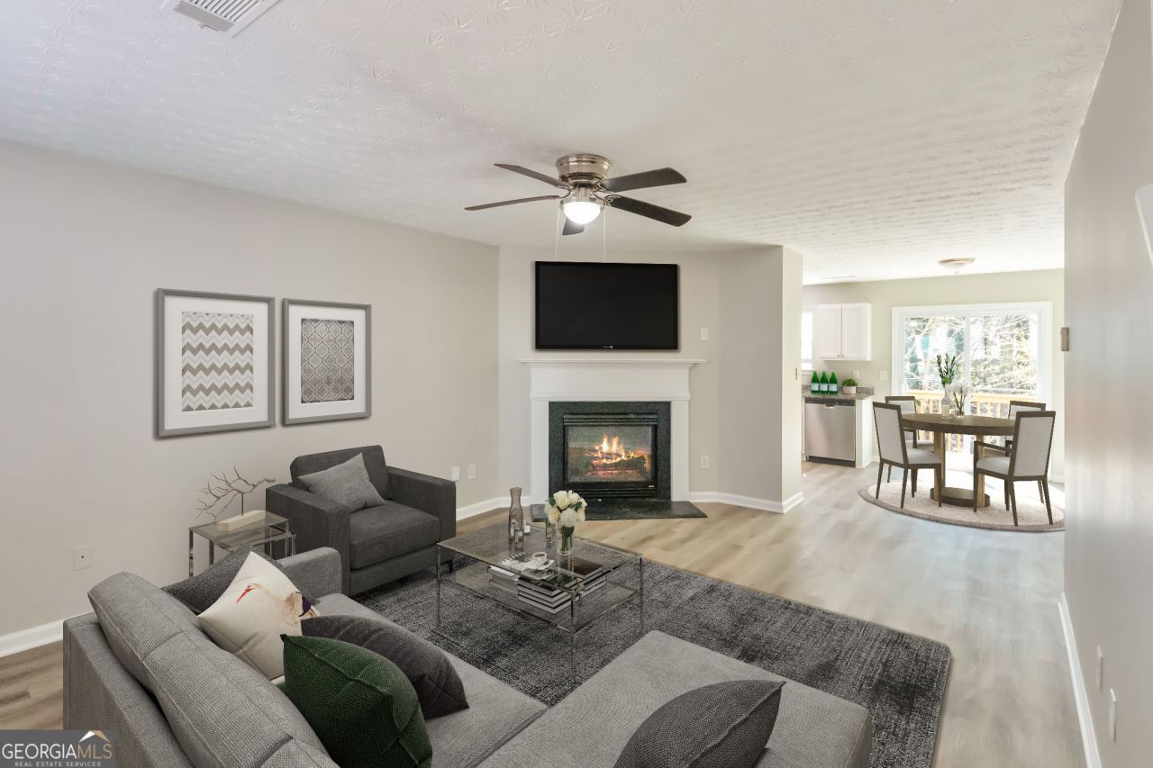 Great home with fresh paint and flooring. There is a guest bedroom and half bath on the main level as well as the family room with fireplace and open kitchen with eating area. Upstairs are 3 bedrooms and 2 full baths. The home has a deck and 1 car garage. Located in a swim and tennis neighborhood and close to restaurants, shopping, schools and Gwinnett County public parks. Nestled in an established, welcoming community with a pool, tennis courts, and more, this single-family home offers not only comfort but also the assurance of a lifestyle where everything you need is nearby. Thanks to its prime location, top-rated schools, beautiful parks, shopping, and dining are all within reach. An active HOA that helps in creating a place to call your own, Welcome home. Disclaimer: This image has been virtually staged. Furniture and decor are for illustrative purposes only and are not included with the property.