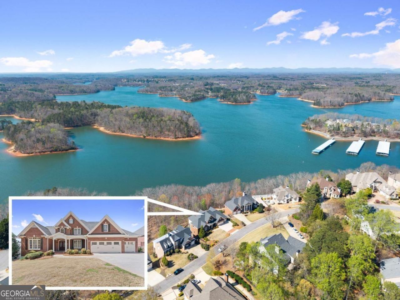 Perched high above the shimmering waters of Lake Lanier, 3518 Lake Breeze Lane is a rare offering where breathtaking, panoramic views stretch for miles-arguably some of the most captivating in all of North Georgia. Reflections of golden-hour sunsets, every rear window frames a living masterpiece, creating a daily experience that feels more like a retreat than a residence. Designed for both elevated living and effortless entertaining, this home welcomes you with a spacious, open-concept floorplan that seamlessly connects the main living areas. Soaring ceilings and walls of windows flood the home with natural light while drawing your eye outward to the endless lake and mountain views beyond. The heart of the home flows from the living room to the kitchen and dining spaces, creating an inviting atmosphere ideal for gathering with family and friends. The main-level owner's suite offers a private sanctuary, thoughtfully positioned to capture serene water and mountain views. Generously sized and filled with natural light, it delivers both comfort and tranquility, complemented by a well-appointed ensuite bath and two spacious walk in closets. With a total of 3 bedrooms, 3 full baths, and 1 half bath, the home provides flexibility for guests and everyday living alike. A spacious game room in the lower level creates the perfect setting for recreation, media, or a secondary living area-while abundant storage and an unfinished sub-basement offer endless potential for customization, expansion, or additional value. Step outside to enjoy elevated outdoor living, where expansive decks and a screened porch invite you to relax, entertain, and fully immerse yourself in the unmatched lakefront scenery. Whether enjoying quiet mornings or hosting sunset gatherings, the setting is simply unforgettable. Located within the prestigious, gated Harbour Point community, residents enjoy access to resort-style amenities including a private marina with your own covered boat slip, a luxury clubhouse, pool, 6 pickleball courts, and 2 tennis courts-offering an active yet refined lifestyle just moments from home. This is more than a home-it's a vantage point, a lifestyle, and a rare opportunity to own one of the most extraordinary view properties Lake Lanier has to offer. Some photos have been digitally enhanced, however the views are very accurate. The rooms have been virtually defurnished, and the home is NOT vacant.
