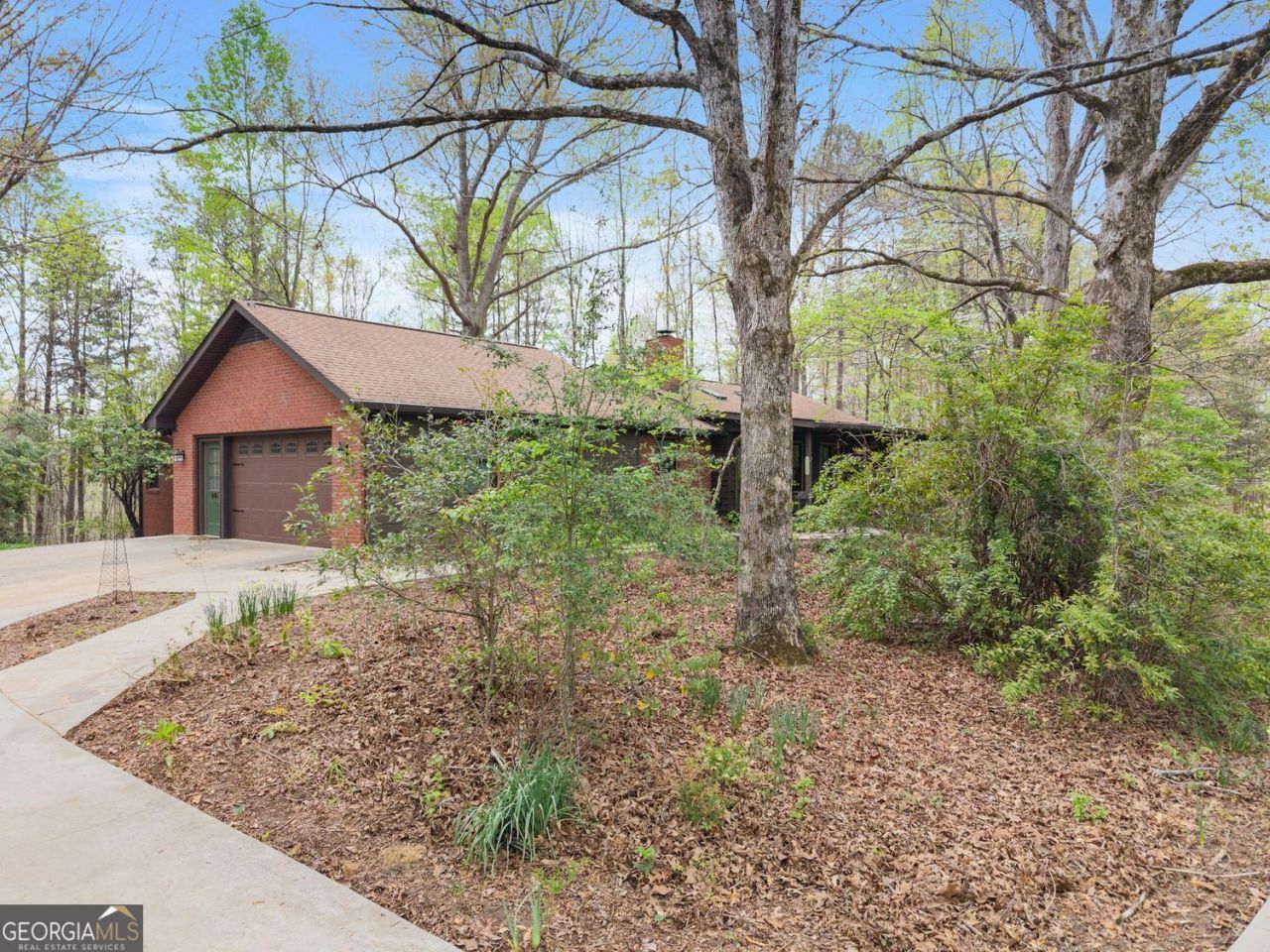 Welcome to the views in the quiet life in Banks County, set on a nice gravel road leading to 10 acres of privacy! You will find the quiet and tranquility you've been looking for in this custom-built, three-sided brick home right out in the country. Enjoy the gently sloping front pasture with a view from the 8' X 26' rocking chair front porch with wildlife, thousands of hand-planted daffodils, and fall color. On the back, a forest of mixed hardwoods and a few pines slopes down to include some frontage on Grove Creek. The front entrance of the home opens into a spacious cathedral ceiling and a soaring stacked-stone fireplace in orchard stone. , a gas lighter, and a special air intake make for easy and efficient wood fires. The living room has skylights, and two nicely sized adjacent bedrooms feature new LVP flooring. There is also a full bath with a cast-iron tub, hickory cabinets, and a granite vanity top. The large living room flows into the large dining room, perfect for entertaining or a quiet dinner for two. The dining room also opens onto the back screened porch. Then you enter the chef's kitchen with maple cabinets, granite countertops, updated appliances, and plenty of counter space. The laundry room features a stainless-steel sink, wood cabinetry, and an included washer and dryer. The hall features two double-door closets and leads to the owner's suite. The solid maple floors continue into this 14' X 24' Owner's suite, with five windows on three sides, guaranteeing a view and cross ventilation. The owner's suite has lots of light, a gas fireplace for cozy evenings, a large walk-in closet, and a tiled bathroom. In addition to all the space on the main level, there's a fully finished daylight basement, perfect for hobbies! Outside, you have a shed, an artist's cottage, and a fenced-in garden to help you enjoy your country life. The orchard stone sidewalk, oak trees, dogwoods, and the pasture complete the scene. A perfect spot for viewing wildlife. Built as a forever home, the owners planted trees, flowers, and shrubs for fall color, beauty, and wildlife, all for you to enjoy