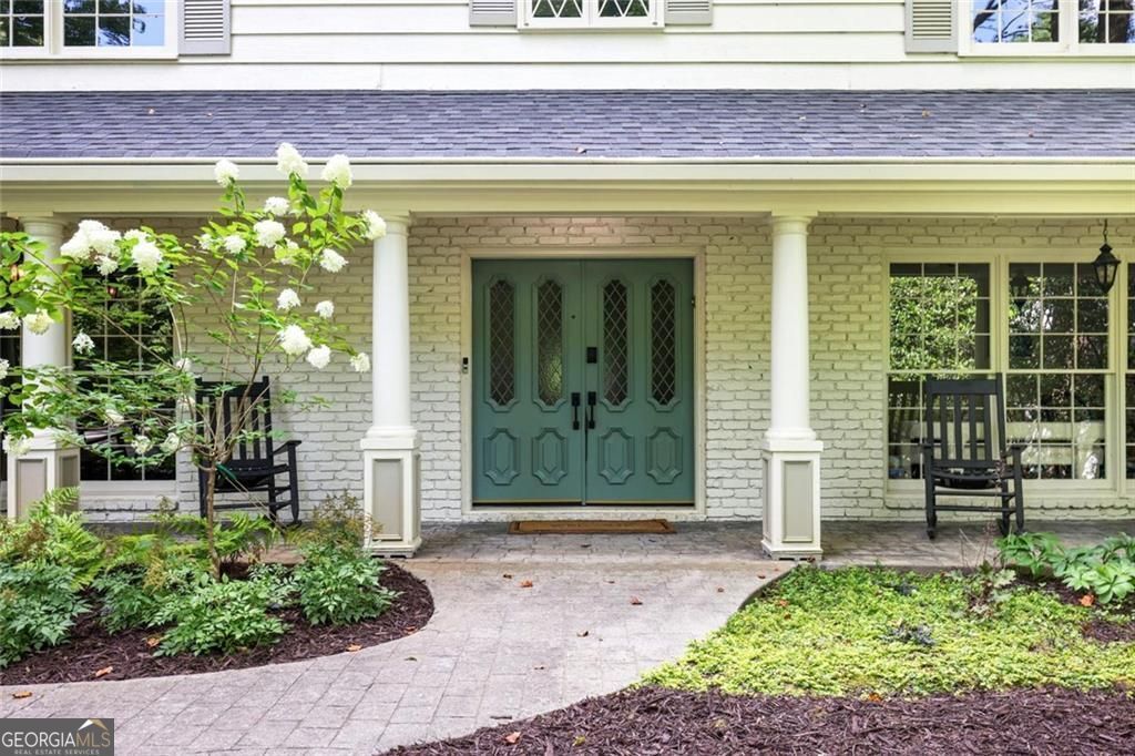 Tucked on a cul-de-sac in the heart of Sandy Springs, this well-maintained home offers a rare sense of privacy in a vibrant neighborhood setting. Thoughtfully updated, freshly painted, and filled with natural light, the open floor plan blends classic architecture with a modern feel and a warm, West Elm-inspired aesthetic. The renovated white kitchen features quartz countertops and a breakfast bar, opening to a vaulted dining room with exposed beams and walls of windows overlooking the backyard. Just off the kitchen, a cozy fireside den and additional living space offer flexibility for gathering, working, or relaxing. A dedicated office, flex or playroom, laundry, and half bath complete the main level. Upstairs, the primary suite is tucked away for privacy and offers generous storage along with a standout bath featuring rich green tile and a floating vanity. Three additional bedrooms complete the upper level, all with hardwood floors. Outdoor living is a true highlight, with an inlaid brick patio surrounded by professional landscaping and a fenced backyard. Recent updates include a newer roof and systems, new sewer line, irrigation system, and leaf guard gutters. Located near Abernathy Greenway with convenient access to GA-400, I-285, City Springs, shopping, dining, and parks. Optional Mark Trail swim and tennis access available nearby.