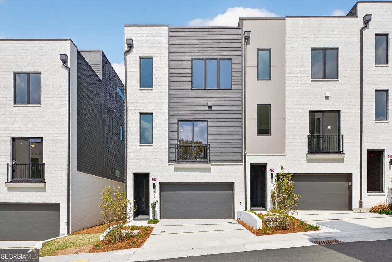 The Forkner plan built by a custom builder at Moda-Decatur. Quick Move-In! Step into luxury living, a stunning 4 level townhome adorned with a roof top deck, wide plank wood floors, high ceiling and an elevator offers a blend of modern elegance. Located within walking distance to Prime Downtown Decatur. Step into the Lower level that offers the opportunity of multigenerational living with a spacious bedroom filled with natural light, full bath with tile walls and floors, bonus room that can be used as a den, office or gym. Take the elevator or well-lit wood steps to the heart of the home that includes a gourmet Kitchen, quartz waterfall island, cooktop, hood vent, wall oven and custom cabinets. Flanked by an expansive family room with oversized windows to enjoy warm inviting light, a Juliet balcony for fresh air, a modern fireplace accented with tile to the ceiling, an oversized dining room with premium lights opens to a deck making the space inviting and welcoming for simple family gatherings and entertaining friends. The third level includes a charming primary suite tucked away in the back of the home for privacy incl a custom closet system, large windows, wood floors and a pocket door that leads to a sleek contemporary bathroom with a huge floor to ceiling tile shower with a bench, double shower heads and seamless shower door. Oversized quartz countertops with double sinks offer plenty of storage. Two cozy secondary bedrooms with custom closets and large windows, laundry closet and secondary bath with a steel tub and tile walls and floors and quartz complete the 3rd level. The 4th level is complete with a half bath, a loft equipped with a full kitchenette that opens to the roof top deck making it suitable for entertaining, winding down after work or taking in skyline views. This location offers the live, work, play that the City of Decatur authenticated. Walkable to restaurants, shopping, entertainment, Marta, Emory Decatur, Whole Foods and Decatur Square. Decatur boast of exceptional schools, a vibrant calendar of events all year-round, the renowned Dekalb Farmers Market, jogging/bike path leading straight to downtown and coming soon performance arts stage in the square with new charging stations. Minutes to major highways.