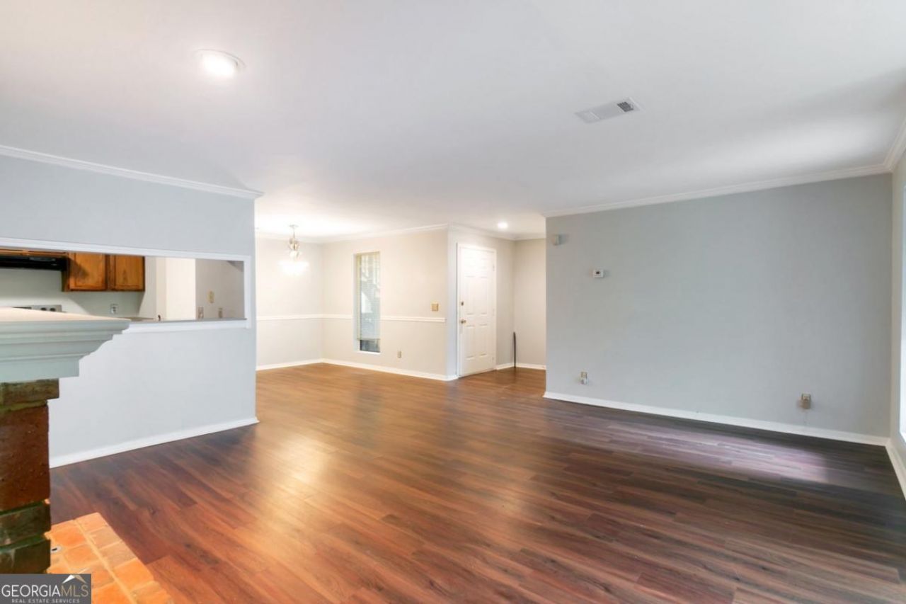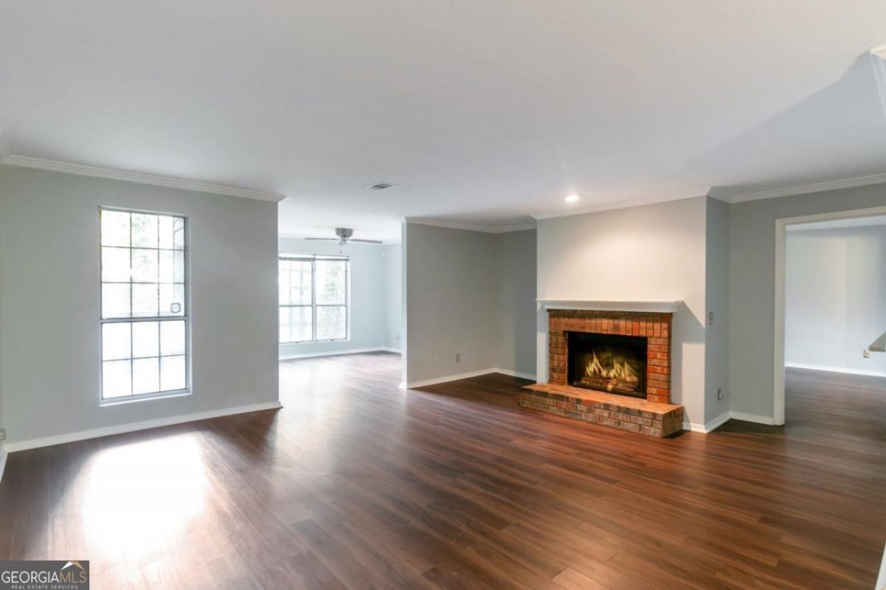 Beautiful 2-bedroom, 2-bathroom basement-level condo located in a quiet, wooded community in Stone Mountain. This well-maintained unit features a spacious open-concept living and dining area with abundant natural light, a cozy fireplace, and durable flooring throughout. The kitchen offers ample cabinet space and a functional layout with a view into the living area. Enjoy peaceful surroundings and outdoor living with access to a rear deck overlooking mature trees-perfect for relaxing or entertaining. Generously sized bedrooms and a practical floor plan make this home ideal for first-time buyers, downsizers, or investors. Conveniently located near shopping, dining, and major highways.