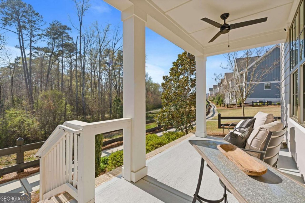 FANTASTIC LOCATION WITH OPEN GREEN SPACE RIGHT NEXT DOOR AND GORGEOUS VIEWS OF THE BIG CREEK GREENWAY!!!! EXCEPTIONAL DESIGNER FINISHES, CLASSIC STYLING - this one is timeless! This home defines luxury and convenience in the heart of HALCYON, Alpharetta's premier live-work-play community. This exceptional 4 bedroom, 3.5 bath detached home with MASTER ON MAIN delivers unmatched elegance and a low-maintenance lifestyle. The bright and airy interior showcases an open layout, high ceilings, wide-plank hardwoods, and designer touches throughout. The outdoor areas include a welcoming, COVERED FRONT PORCH that overlooks the greenway and an ENCLOSED PATIO fitted with automatic, retractable screens that provide privacy, shade, and protection from the elements. The patio offers beautiful views of a community green space, creating a peaceful setting for outdoor living. The home is anchored by a stunning chef-inspired kitchen featuring a statement range hood flanked by floating shelves, ceiling height cabinetry, and a large eat-in island with pendant lights. The walk-in custom pantry/scullery has been transformed with additional counter space, a beverage fridge, and ample storage to house your appliances and keep them tucked away out of sight. All of this flows effortlessly into the inviting family room that is centered around a shiplap fireplace with built-in bookcases, wood beam ceilings, and automatic shades. In addition to all of this, you will find a flex space with French doors and more custom cabinetry well-suited for a home office, sitting area, or playroom. The primary suite that is conveniently located on the main floor provides the ideal retreat with a tray ceiling, walk-in closet and an owner's bath that includes dual vanities, a frameless shower, and a freestanding, soaking tub. It's the optimal place to unwind. Upstairs, there are 3 additional bedrooms, 2 bathrooms, and a spacious loft area. Perfectly positioned within Halcyon just a short walk from shopping, dining, and entertainment. There is even a private walking tunnel under the roadway for easy access to everything. Residents also enjoy close proximity to the scenic Big Creek Greenway, Trader Joe's, and convenient access to GA-400. Neighborhood amenities include community green spaces, a fire pit for gathering, and a pool. From local restaurants and retail, to beautifully maintained green spaces, everything you need is within easy reach.