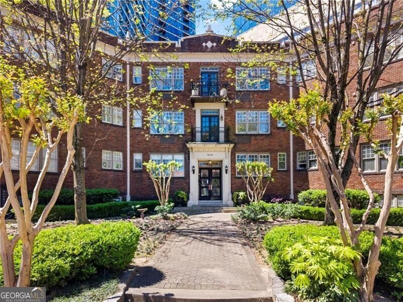 Tucked into the heart of Midtown, this charming second-floor condo blends timeless character with thoughtful updates. This 2 bed / 1 bath welcomes you with soaring ceilings, rich hardwood floors, and an abundance of natural light flowing through an open, airy layout. The dining space opens to a private balcony through elegant double doors, offering peaceful views of the shared courtyard below. The kitchen is both stylish and functional, featuring a rare gas range, stainless steel appliances, granite countertops with bar seating, and a seamless connection to the dining and living spaces. The oversized primary bedroom includes a walk-in closet and a spacious laundry closet with a stackable washer and dryer plus additional storage. A secondary bedroom provides flexibility for working from home or hosting visitors, with plenty of storage to keep everything organized. Hardwood floors shine throughout, and the home is truly move in ready. The water heater was replaced in 2022, adding peace of mind. Additional perks include an assigned parking space (#22) in a gated lot, and 7 guest parking spaces for visitors. Residents enjoy a beautifully maintained front courtyard plus in the back, a large patio perfect for relaxing or entertaining with grill and seating area. HOA dues include both water and gas. All of this in an unbeatable Midtown location just moments from Piedmont Park, the Beltline, MARTA, shops, restaurants, and museums. The building is also eligible for conventional financing, making this an exceptional opportunity in one of Atlanta's most sought-after neighborhoods. Don't miss this gem!