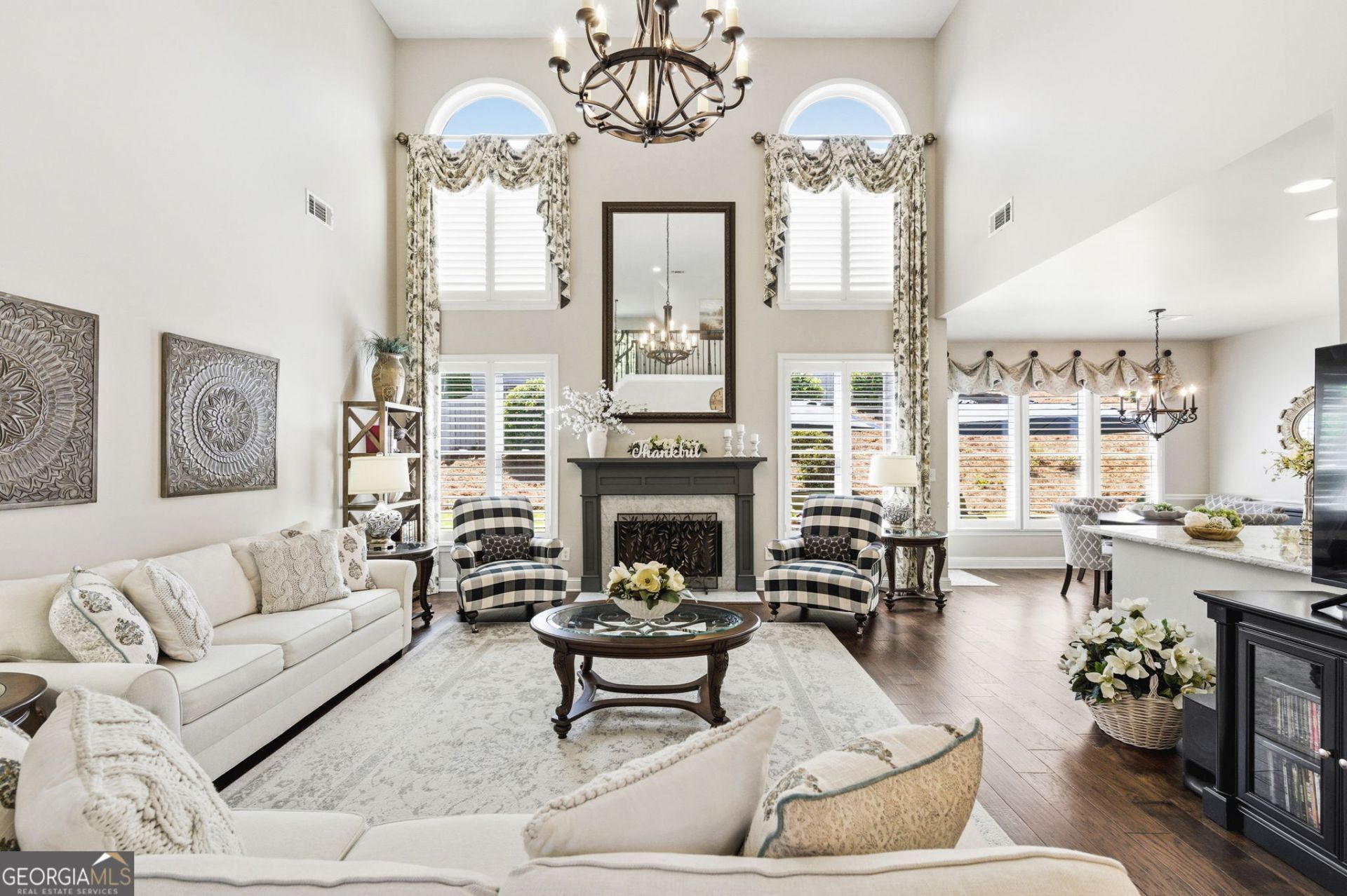 Step into luxury with this FULLY renovated 5-bedroom, 4-bath estate that truly shows like a model home. Every detail has been thoughtfully updated-from the brand-NEW kitchen and spa-inspired bathrooms to the rich hardwood floors and designer lighting throughout. At the heart of the home is a stunning custom kitchen featuring high-end stainless steel appliances, crisp white cabinetry, a spacious pantry, and seamless flow into the dramatic two-story great room and sunlit breakfast area. The open-concept layout connects effortlessly to the formal dining room, making this home ideal for entertaining. Natural light pours in, creating a bright and inviting atmosphere throughout the main living spaces. The main-level primary suite is a true retreat, complete with a tray ceiling, abundant natural light, and a luxurious, magazine-worthy bath. Enjoy a freestanding soaking tub, an oversized tiled shower with frameless glass, and a double vanity with granite countertops, custom mirrors, designer tile flooring, and elegant lighting. A large walk-in closet completes the suite. On the opposite side of the main floor, you'll find a private guest bedroom and full bath-perfect for visitors or multi-generational living. Additional main-level highlights include a spacious laundry room with custom cabinetry, floating shelves, and a convenient folding station. Upstairs offers three generously sized bedrooms with ample closet space and two beautifully updated bathrooms. Hardwood and tile flooring extend throughout the entire home, adding to its upscale appeal. Outside, the professionally landscaped yard provides a private patio-perfect for summer barbecues and relaxing evenings. Ideally located just minutes from major highways, shopping, dining, fitness centers, and top-rated schools, this exceptional home combines elegance, comfort, and convenience. This is truly a must-see property.