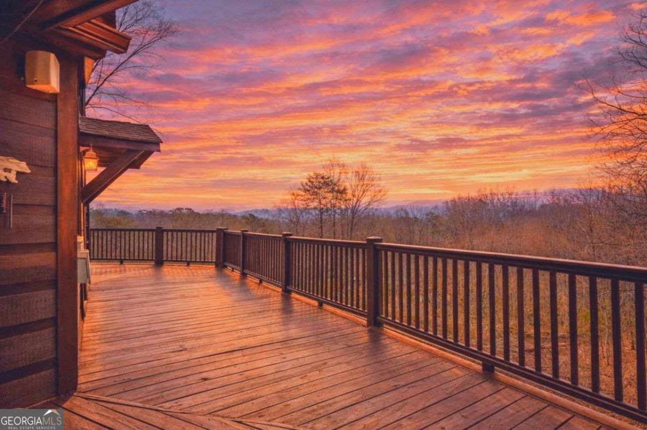 Framed by breathtaking, layered mountain views, this stunning prow-front cabin built by renowned builder Keith Sumner offers the perfect blend of craftsmanship, comfort & unforgettable scenery, just minutes from the charm of Blue Ridge. Multiple decks & wraparound porches invite you to soak in the ever-changing mountain backdrop. The main porch features a beautiful outdoor fireplace, extending your living space & offering a cozy place to relax while enjoying the peaceful setting. Inside, the spacious great room welcomes you with soaring ceilings, a dramatic floor-to-ceiling stacked stone fireplace & walls of windows complemented by double French doors that frame the view from every angle. The open-concept layout flows into the dining area & a well-appointed U-shaped kitchen featuring ample cabinetry, generous counter space & rustic stone accents. With a bedroom & full bath on each level, the layout offers exceptional privacy & flexibility for family & guests. The main level features a comfortable bedroom & large bath with convenient laundry closet. Upstairs, the vaulted primary suite is a true retreat, complete with an arched window detail, spa-like ensuite with soaking tub & separate shower & large walk-in closet. The terrace level is built for fun & relaxation, with tall ceilings, an additional fireplace, ping pong & foosball, and custom bar setup. Rustic stone flooring flanks the double French doors, leading you out to the lower deck where the mountain views continue to impress. This level also includes a bedroom, full bath, owner's closet & storage/mechanical room. Located just 4 miles from downtown Blue Ridge with mostly paved access, you're moments away from boutique shopping, dining & endless adventures, making this an ideal full-time residence, weekend escape, or income-producing rental. Wake up to sunrises over layered ridgelines, unwind with golden-hour views from the porch and imagine your life surrounded by the beauty only the North Georgia mountains can offer.
