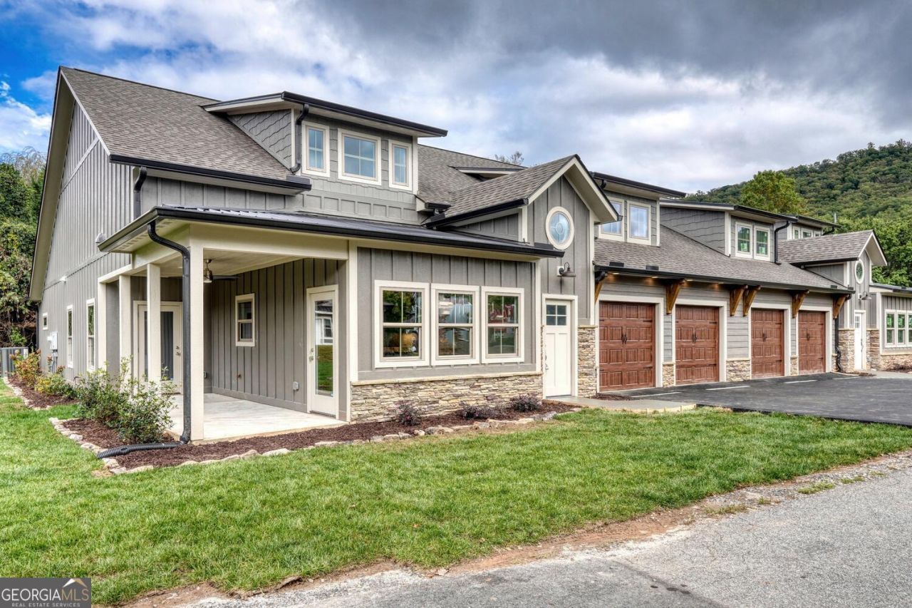 LAKEFRONT TOWNHOME ON BEAUTIFUL LAKE CHATUGE, COMMPLETE WITH DEEDED BOAT SLIP. Nestled in the scenic beauty of the North Georgia Mountains, this custom-built single story townhouse is a haven of modern luxury and natural serenity. Boasting a contemporary design, this newly constructed residence features three bedrooms, two and a half bathrooms, and a well-thought floor plan that prioritizes convenience and easy accessibility with no steps to climb. Enter into the spacious interior, where an open-air concept design seamlessly connects the living, dining, and kitchen areas, creating a welcoming space for relaxation and entertainment. The home is adorned with premium finishes, such as exquisite granite countertops, sleek stainless steel appliances, and a stunning floor-to-ceiling fireplace in the living room and 1 in the master suit. A standout feature of this property is the deeded covered boat slip on Lake Chatuge. Walk from your home down to the water's edge without climbing one step. This is a luxury rarely found on Lake Chatuge. Whether you're a boating enthusiast or simply enjoy lake life living this amenity is a rare find. Uniquely untouched and never lived in, this townhouse offers a pristine canvas for you to personalize and make your own. This townhouse seamlessly combines modern convenience with the tranquility of the mountain setting, offering the best of both worlds. Conveniently located within walking distance to downtown Hiawassee, GA, residents can enjoy easy access to local amenities, including shops, restaurants, and community events. The property also features a two-car attached garage, ensuring that your vehicles are secure and easily accessible. Whether you're seeking a permanent residence or a vacation retreat, this townhouse provides a luxurious and comfortable living.